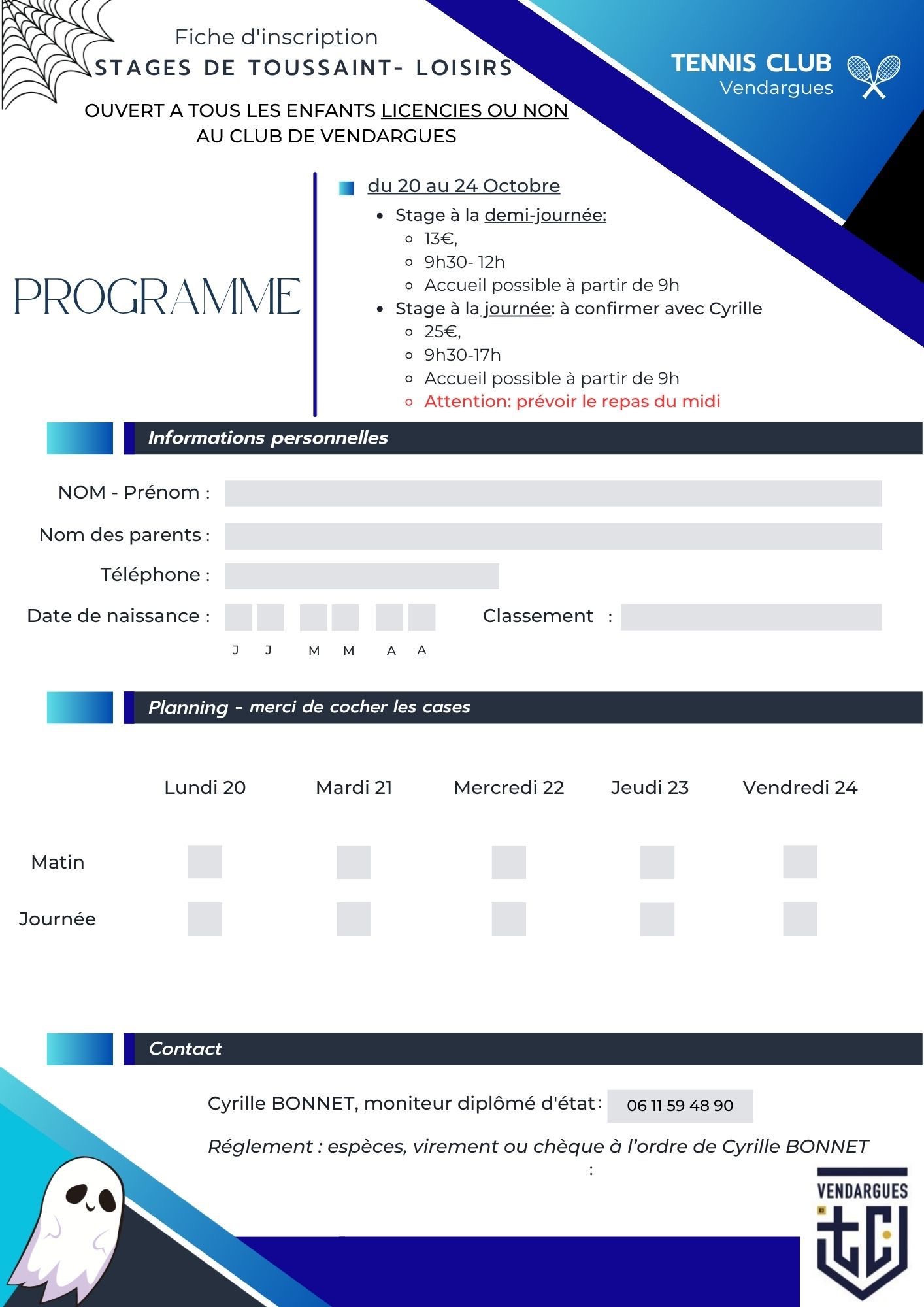 Leur organisation, leurs tarifs et leur gestion relèvent exclusivement des professeurs et ne dépendent pas du bureau du Tennis Club de Vendargues.